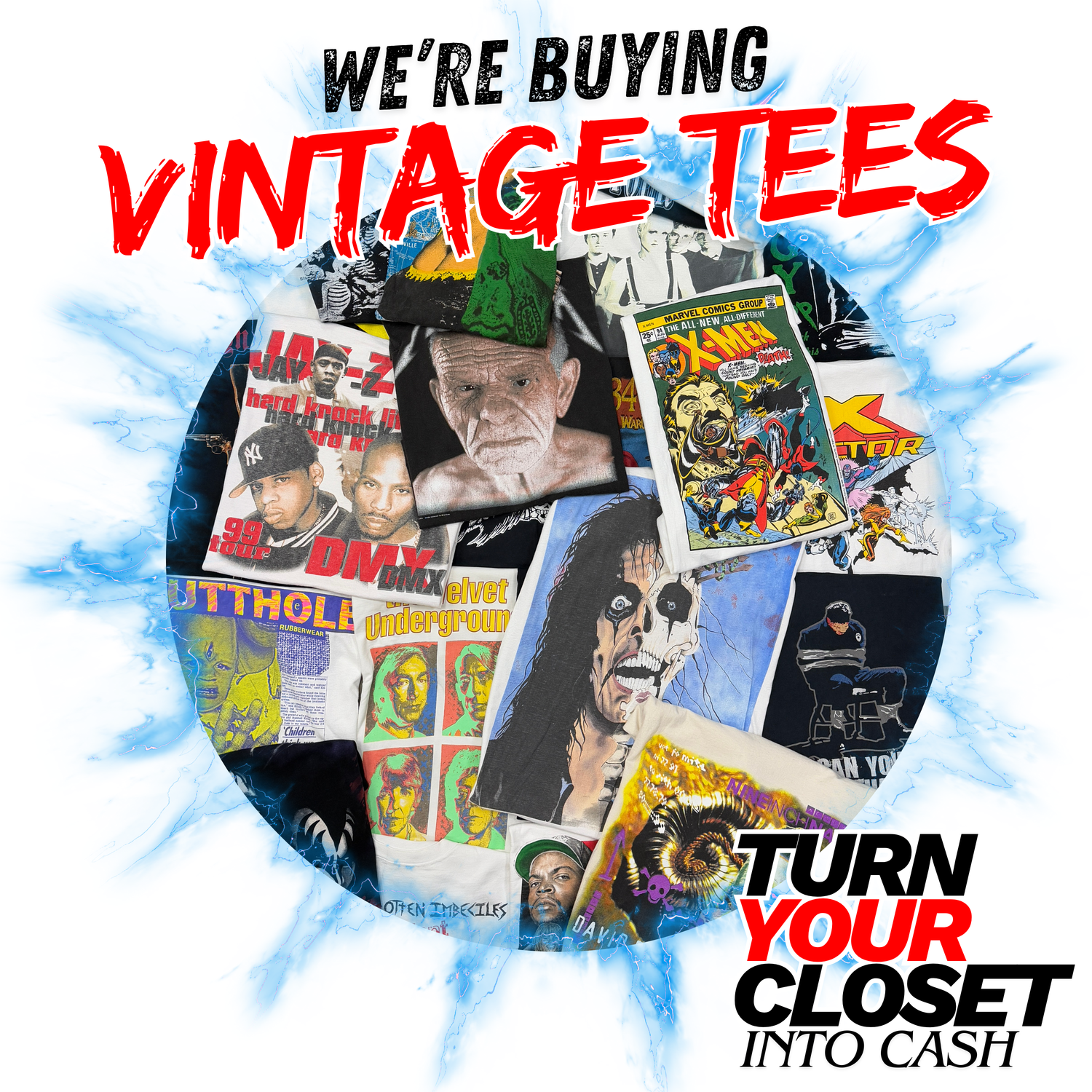 We’re buying vintage concert, band, sports and pop culture shirts from the 1970s through early 2000s. Vintage means 20+ years old. Email photos to shirts@wycovintage.com or fill out the form below to get started.